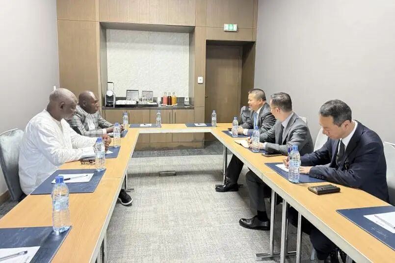 11月9日,蘭眉中董事長(zhǎng)在與科特迪瓦非洲一體化部長(zhǎng)Adama DOSSO進(jìn)行會(huì)談